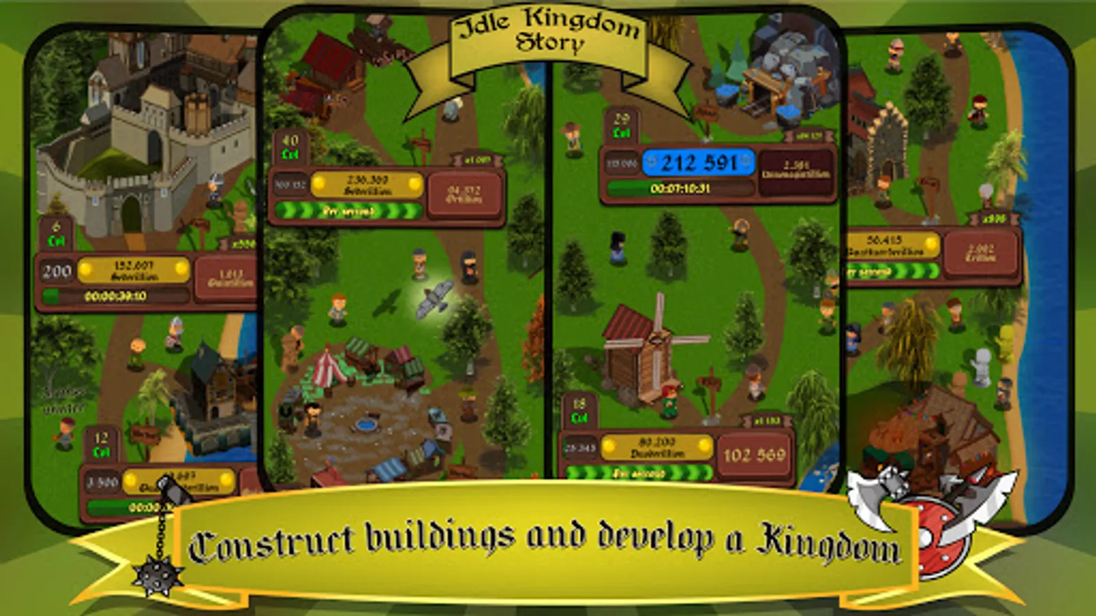 ⭐️ Build the houses, churches, mines, farms in the magic world.