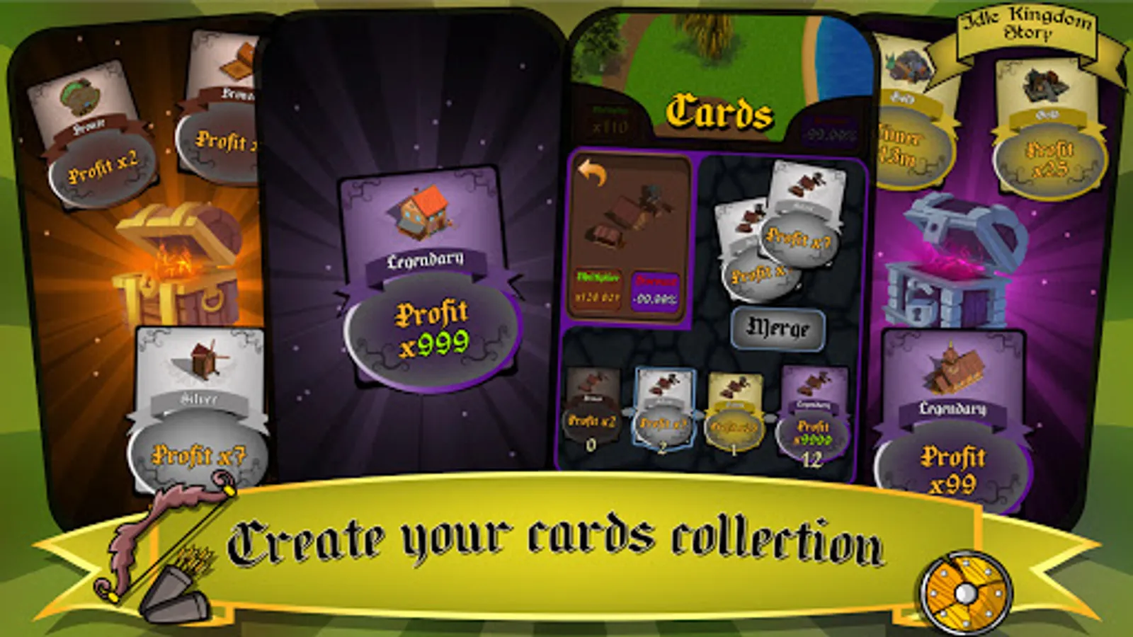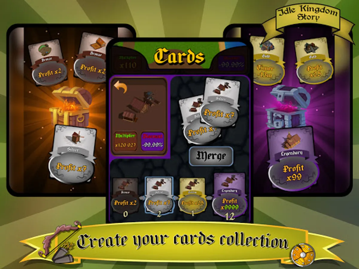⭐️ Collect cards with an income multiplier, combine them to get more powerful and epic cards.