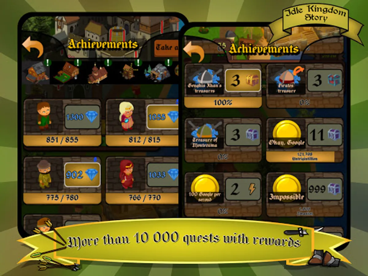 You can invest your resource in different area. Only you know how to build a wonderful world. There are also many characters that you can pump. Become a millionaire Gucci Tycoon! Enjoy Idle Kingdom Story: Tap Tycoon & Clicker Idle Games ❤️