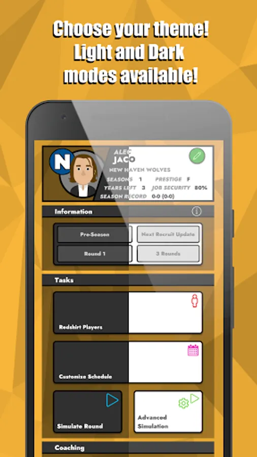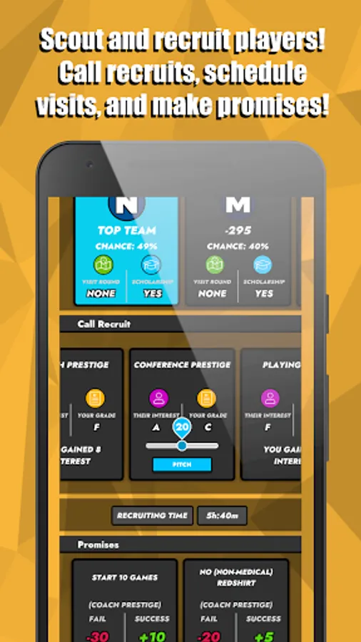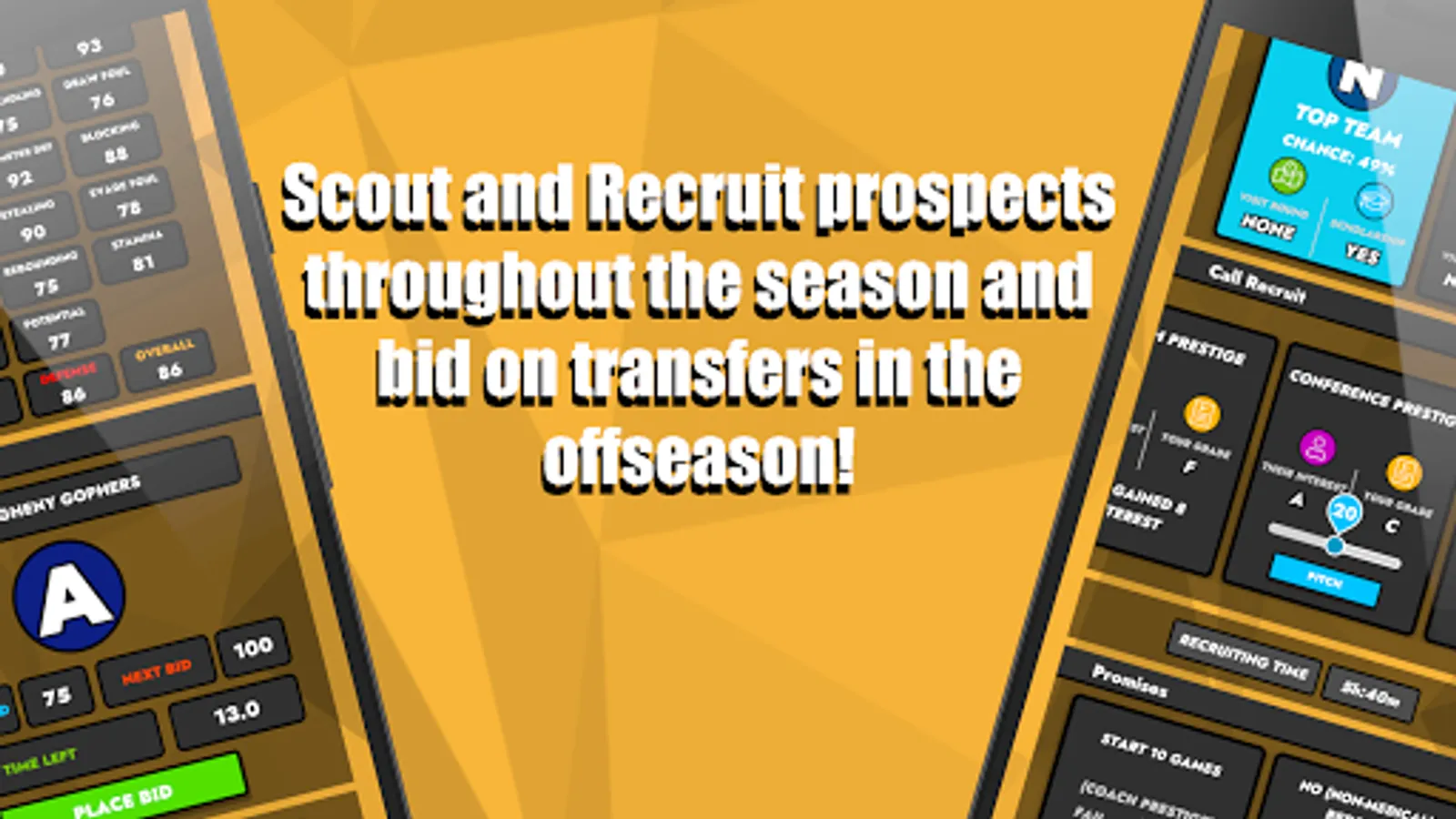 College Basketball: Dynasty Sim puts you at the helm of a college basketball team. Do you have what it takes to build your team from the ground up, from a cupcake to a perennial powerhouse? Choose a College Basketball team, customize and upgrade your coach, customize your non-conference games, adjust your gameplan, scout and recruit new players, and bid on transfers to see if you have what it takes to win Conference Championships and the Big Tournament.