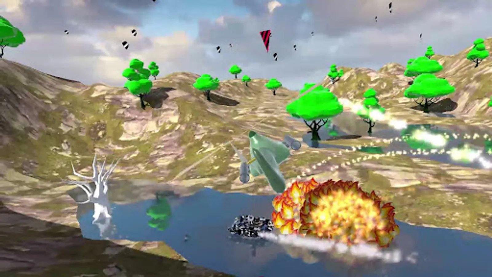 You are the commander of a military helicopter and from the very beginning of the game you are on the battlefield. It is necessary to destroy all enemy equipment of the enemy army. Tanks and cannons will try to destroy your helicopter with cores, and naval ships are equipped with rapid-fire machine guns, which are very difficult to dodge in battle. Your helicopter is equipped with homing missiles. To destroy enemy tanks and cannons, one missile hit is enough, and to destroy warships you will need to hit them several times. The number of lives of the ships is indicated above them. Don't forget about protecting your helicopter. Additional armor can be collected on the battlefield.