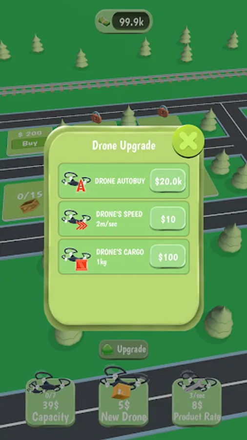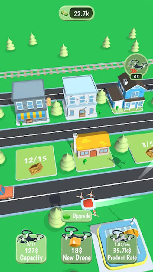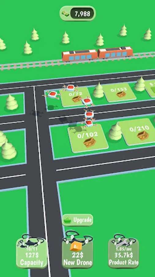Build new drones. Improve their carrying capacity and speed so that your city develops faster.