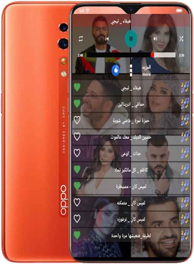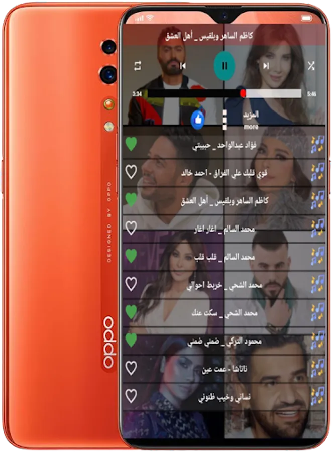 We present to you the application of Arabic songs without the net 2023, an application that contains the most beautiful and wonderful old and new Arabic songs. The application of Arabic songs without Internet 2023 is also distinguished by many features, such as a distinctive, elegant and easy-to-use design + the addition of all new and exclusive Arabic songs 2023 as soon as they are released directly. Works without the Internet. Very high sound accuracy and purity when listening. The feature of listening to songs and using other applications, and there is also the feature of filming while listening to the song at the same time, the feature of adding songs to the favorites list, and many exclusive features in the application of Arabic songs without Net 2023. So that Arabic songs are considered among the most beautiful and wonderful romantic, sad and other songs, and they have a great mediator in the Arab world ... The application contains more than 100 Arabic songs that are more than wonderful, and we were keen to add the best songs and the most listened to by more than 50 Arab artists and artists. If you are a fan of Arabic songs, this application was made for you. You will not regret it. Download the application now for free, and enjoy and listen to the most beautiful and wonderful Arabic songs without the Internet, with high quality and easy to use in only one place. 2023 without the Internet.