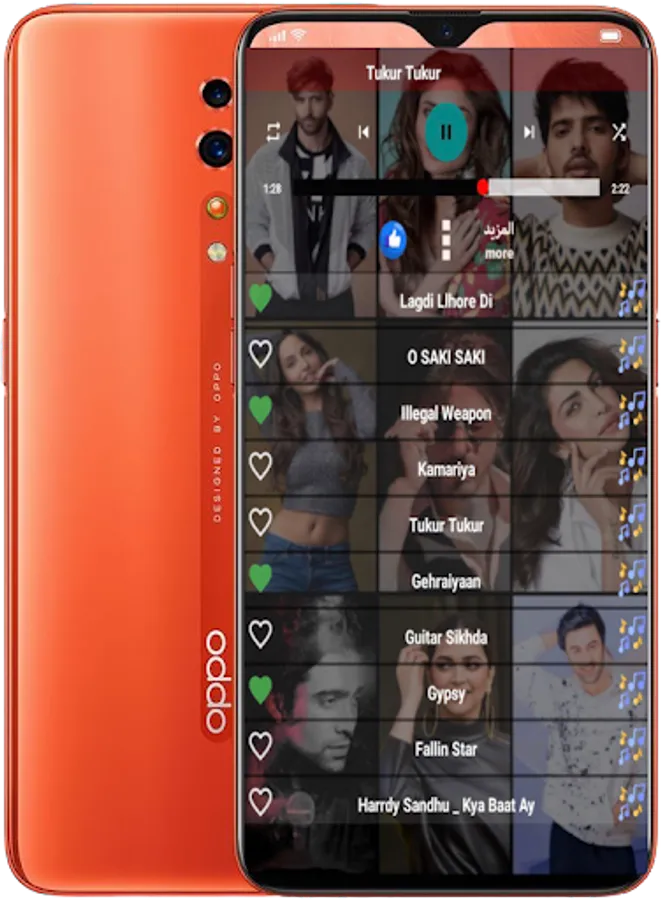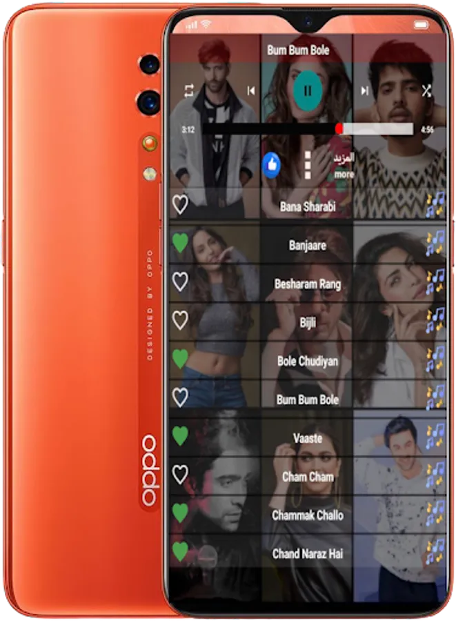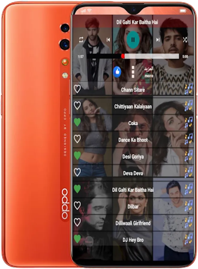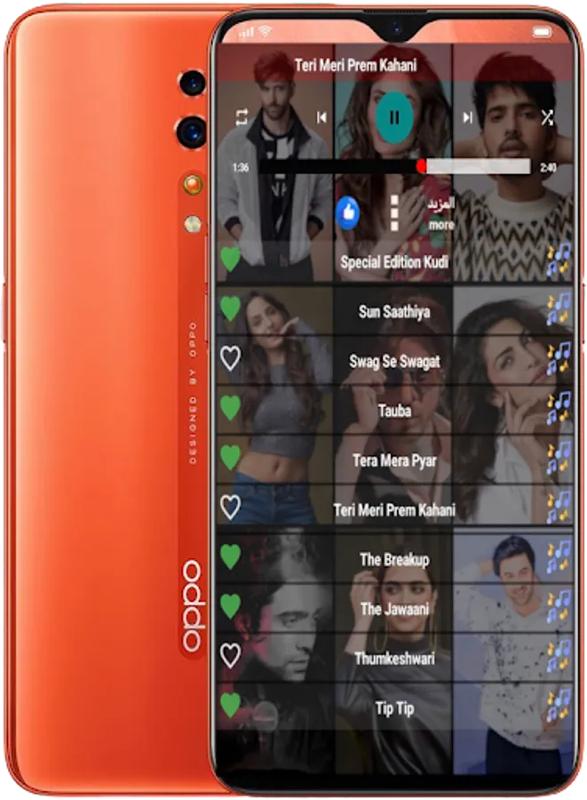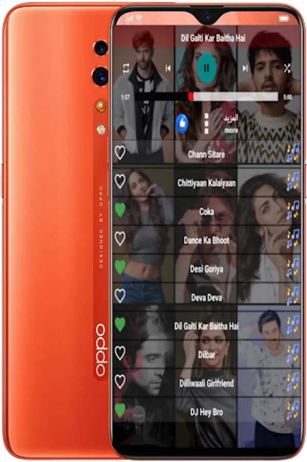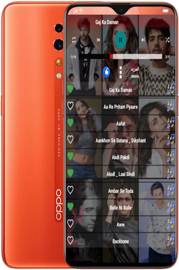 We present to you an application of various Indian songs without the net 2023, an application that contains the most beautiful and wonderful old and new Indian songs. The application of Indian songs without Internet 2023 is also distinguished by many features such as a distinctive, elegant and easy-to-use design + the addition of all new and exclusive Indian songs 2023 as soon as they are released directly. It works without the net. Very high sound accuracy and purity when listening. The feature of listening to songs and using other applications, and there is also the feature of photographing while listening to the song at the same time, the feature of adding songs to the favorites list, and many exclusive features in the application of Indian songs without Net 2023. So that Indian songs are considered among the most beautiful and wonderful romantic, sad, enthusiastic and other songs, and they have a great mediator in the Arab world and in the whole world ... The application contains more than 100 Indian songs that are more than wonderful, including sad, romantic, enthusiastic songs and others, and we were keen to add the best songs and the most listened to by more than 50 Indian artists and artists. If you are a fan of Indian songs, Indian series and movies, then this application was made for you. You will not regret. Download the application now for free, and enjoy and listen to the most beautiful and wonderful Indian songs without the Internet, with high quality and easy to use in only one place. 2023 without the Internet.