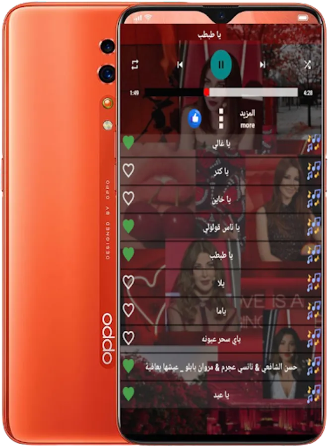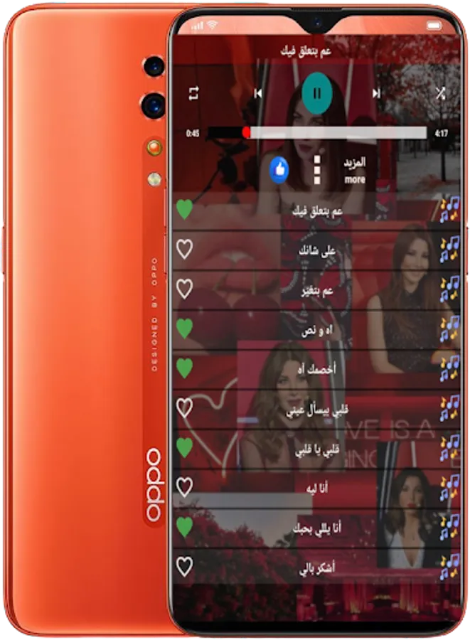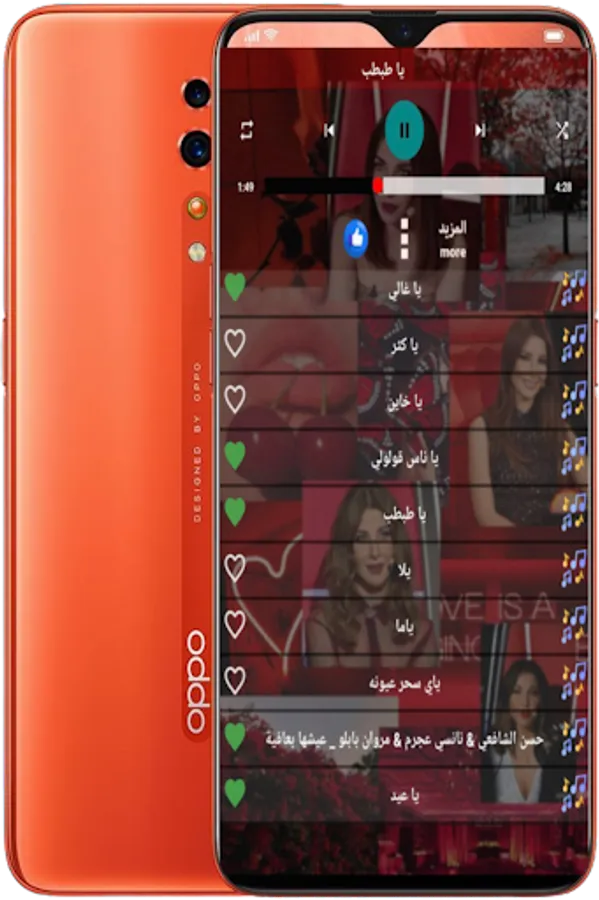 We present to you the Nancy Ajram songs application without Net 2023, an application that contains all the old and new Nancy Ajram 2023 songs. The application of Nancy Ajram songs without Internet 2023 is also characterized by many features such as a distinctive, elegant and easy-to-use design + the addition of all new and exclusive Nancy Ajram songs 2023 immediately upon their release. Works without the Internet. Very high sound accuracy and purity when listening. The feature of listening to songs and using other applications, and there is also the feature of filming while listening to the song at the same time, the feature of adding songs to the favorites list, and many exclusive features in the application of Nancy Ajram songs without Net 2023
