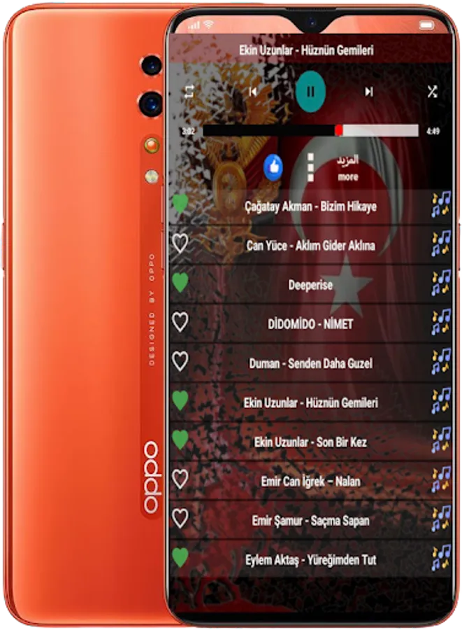 We present to you the application of various Turkish songs without the net 2023, an application that contains the most beautiful and wonderful old and new Turkish songs. The application of Turkish songs without Internet 2023 is also distinguished by many features, such as a distinctive, elegant and easy-to-use design + the addition of all new and exclusive Turkish songs 2023 as soon as they are released directly. It works without the net. Very high sound accuracy and purity when listening. The feature of listening to songs and using other applications, and there is also the feature of photographing while listening to the song at the same time, the feature of adding songs to the favorites list, and many exclusive features in the application of Turkish songs without Net 2023. So that Turkish songs are considered among the most beautiful and wonderful romantic, sad and other songs, and they have a great mediator in the Arab world. The application contains more than 100 Turkish songs that are more than wonderful, including sad, romantic, enthusiastic songs, and others. We were keen to add the best songs and the most listened to by more than 50 Turkish artists and artists. If you are a fan of Turkish songs and Turkish series, this application was made for you. You will not regret. Download the application now for free, and enjoy and listen to the most beautiful and wonderful Turkish songs without the Internet, with high quality and easy to use in only one place. 2023 without the Internet