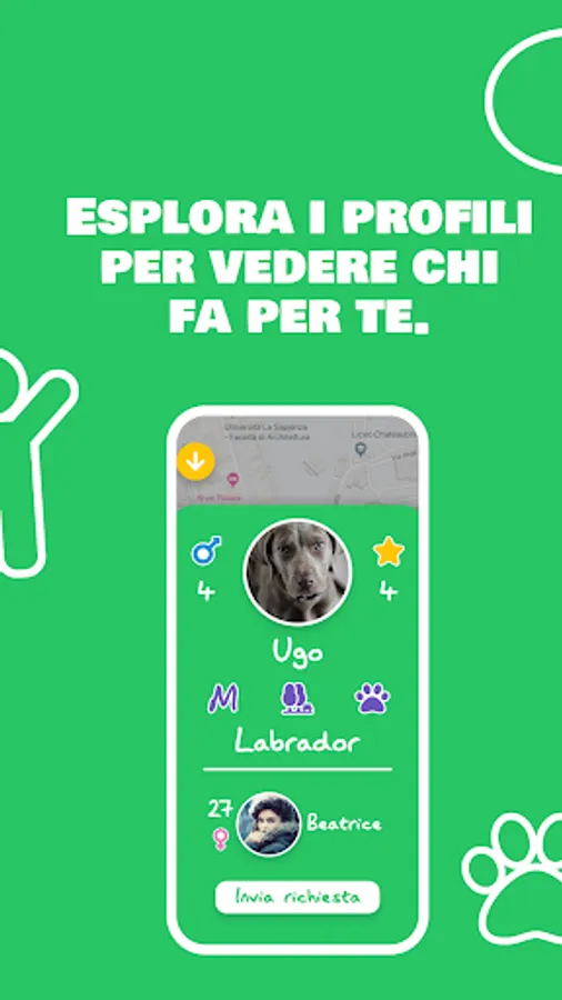 Thanks to the location of your smartphone and our interactive map you can find out who is around you.