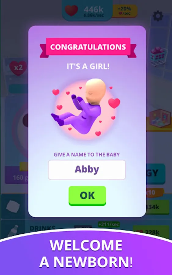 👶🏾 Give virtual birth in the 3D game to a lovely baby boy or girl.