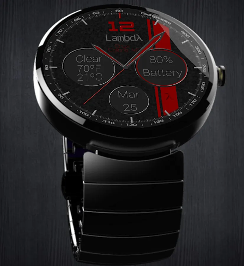 Lambdλ™(pronounced lambda) Watchfaces are the highest quality watchfaces available to date. Elegant designs mesh with unsurpassed performance and elite functionality. Lambdλ™ Watchfaces provide the user with stunning and practical utilities such as weather, time, date, and battery percentage. Lambdλ™ Watchfaces also feature a sweeping second hand, which emulates a mechanical watch movement. The Lambdλ™ Watchfaces come in a variety of styles to suit personalities and tastes alike. Lambdλ™ Watchfaces: quality and elegance at your command.