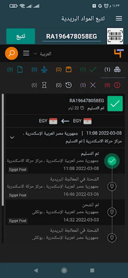 - The application contains tracking of postal items.