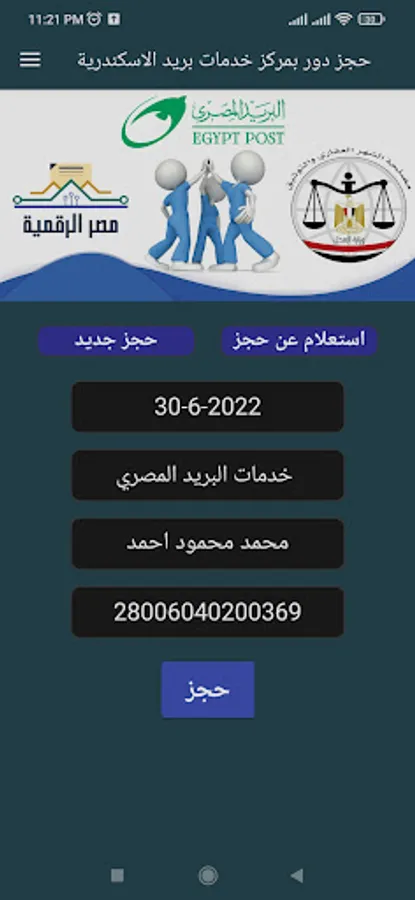 - The application contains the possibility of booking a role with services (Egyptian Post - Digital Egypt - Documentation Office)