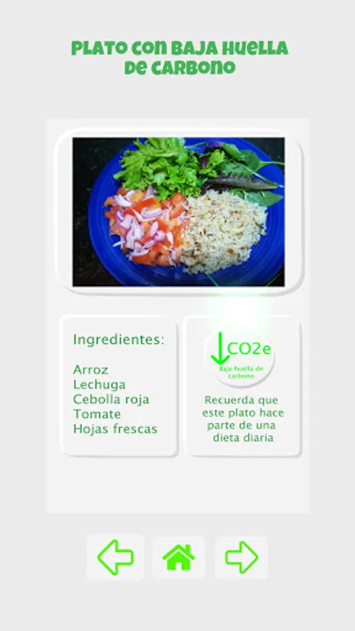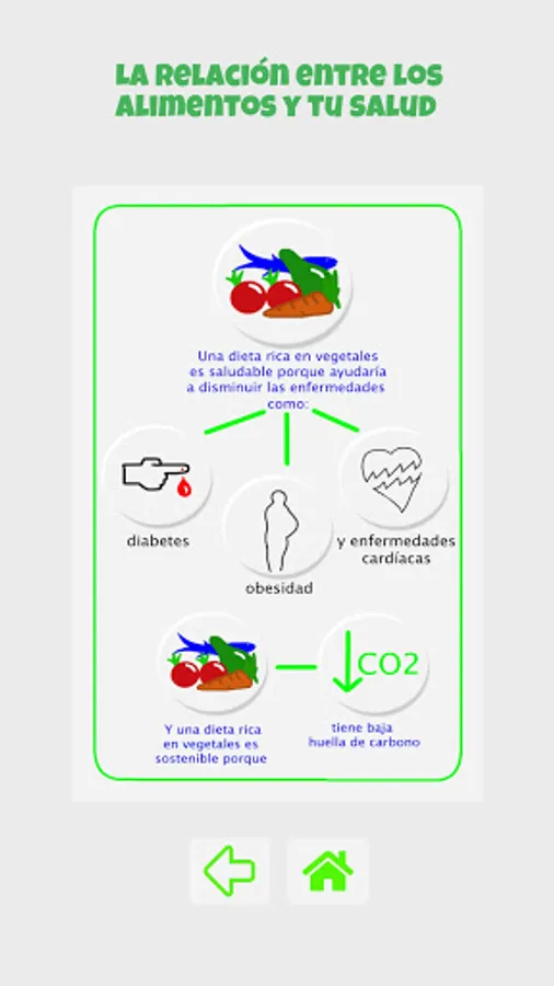 This app briefly describes that a healthy and sustainable diet is good for planet Earth and for all living things. You will know the relationship between a diet abundant in vegetables and few products from animal sources are good for your health and help reduce the impact of the production of gases such as CO2 and CH4, which contribute to climate change. We present you a series of artisan dishes with their carbon footprint; also a 3-course suggestion as part of a healthy and sustainable diet, derived from the planetary diet guide; and at the end you will be able to know what your healthy and sustainable profile is. Thanks for the comments and sharing.