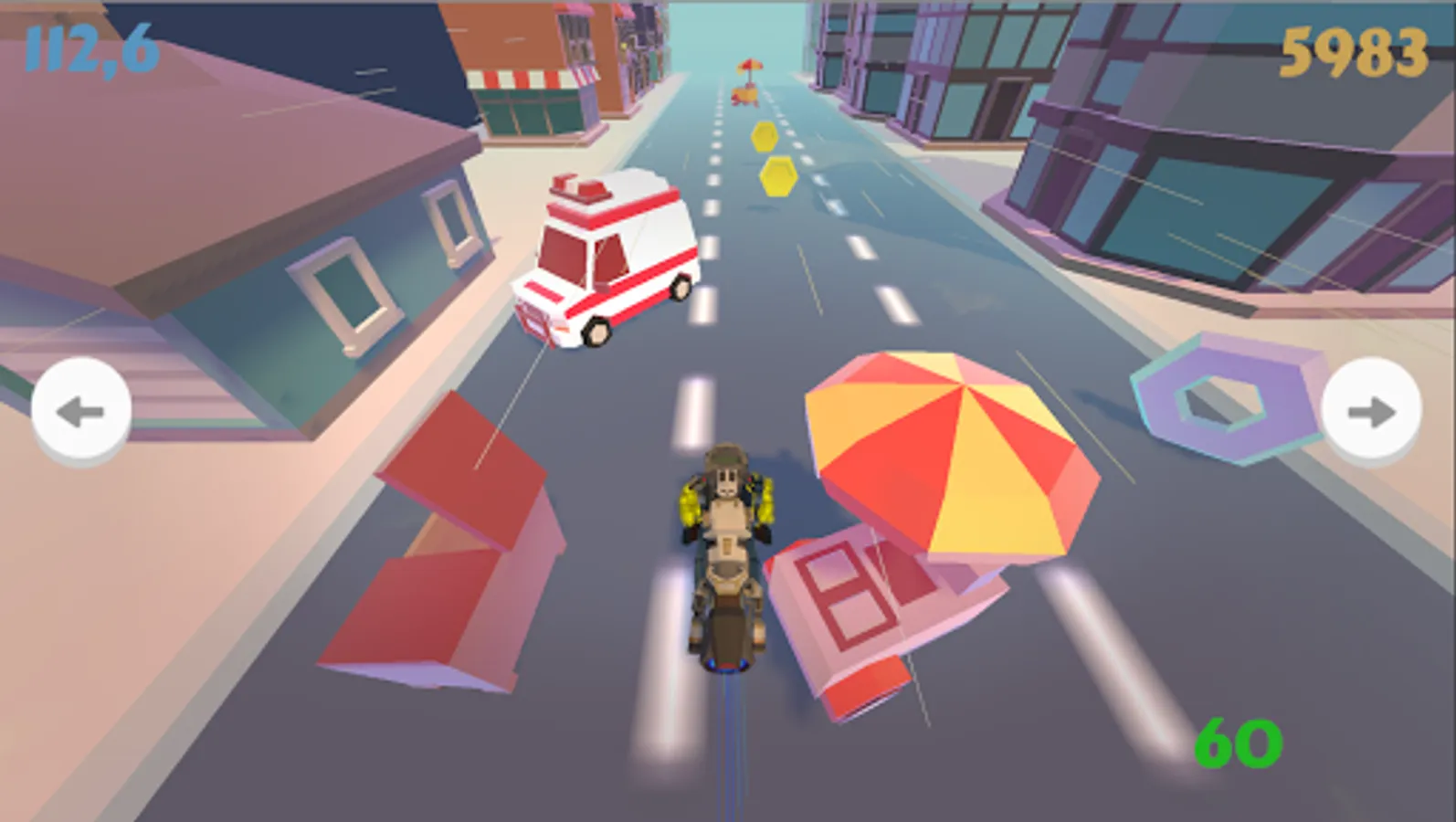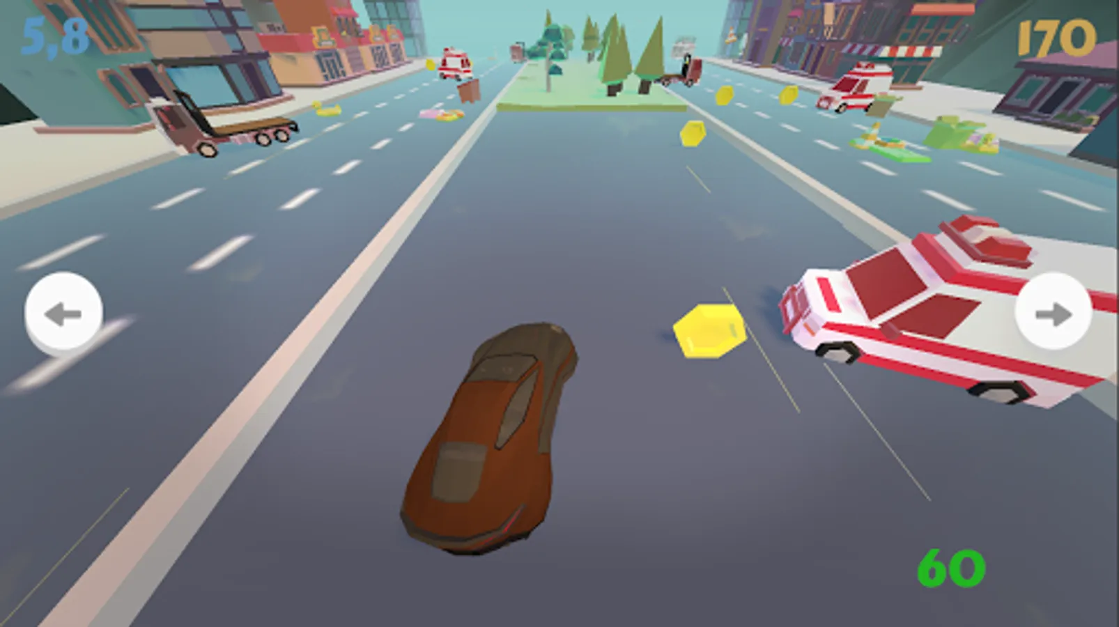 You embody different vehicles having to cross different levels / environments. On your way, you will have to avoid obstacles or graze them to earn points. Other smaller objects will be present,