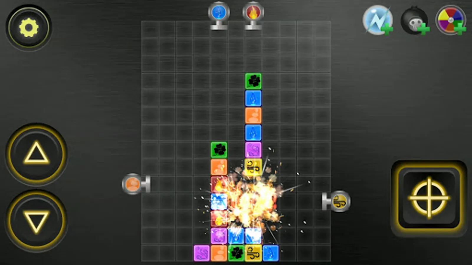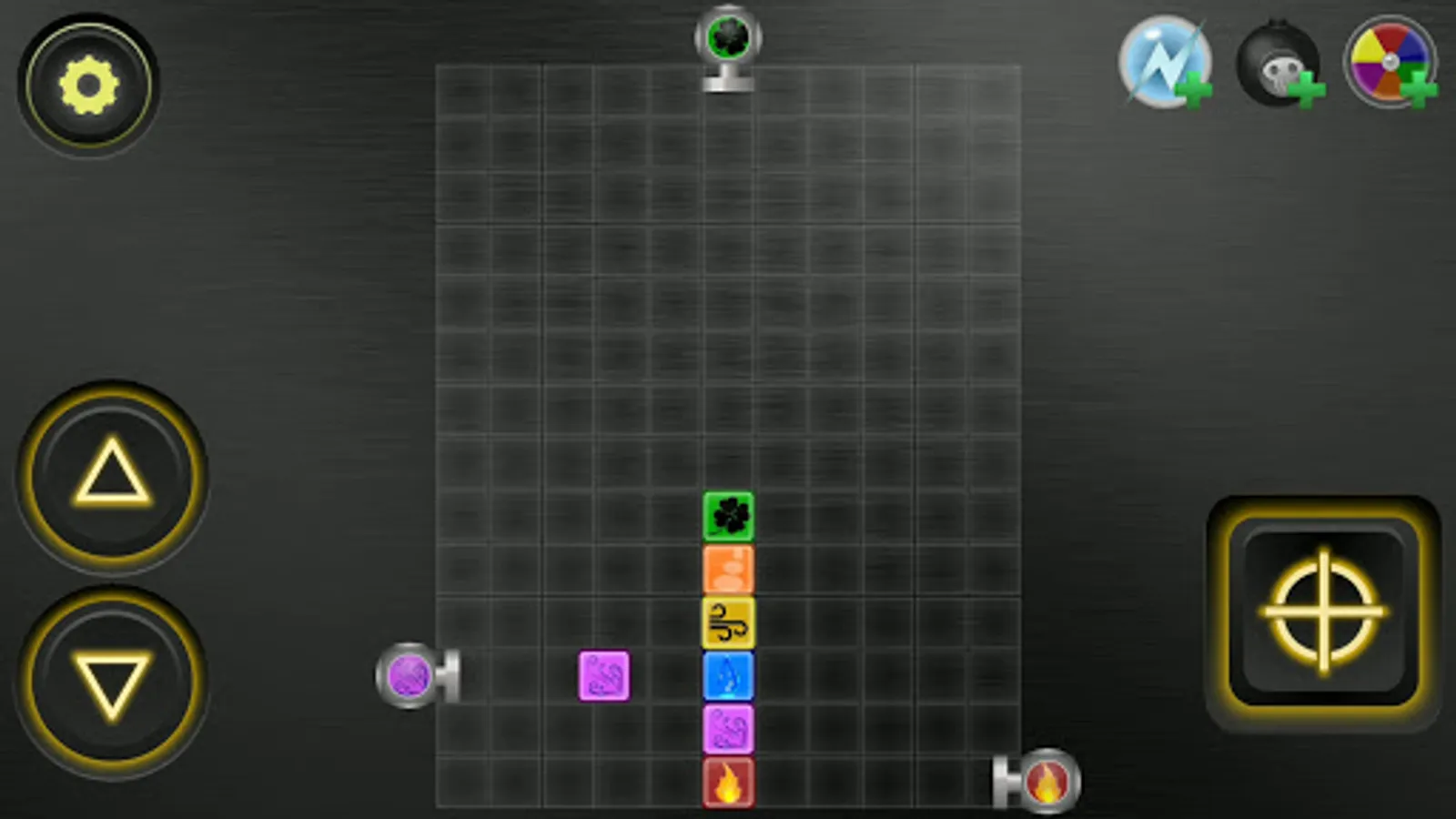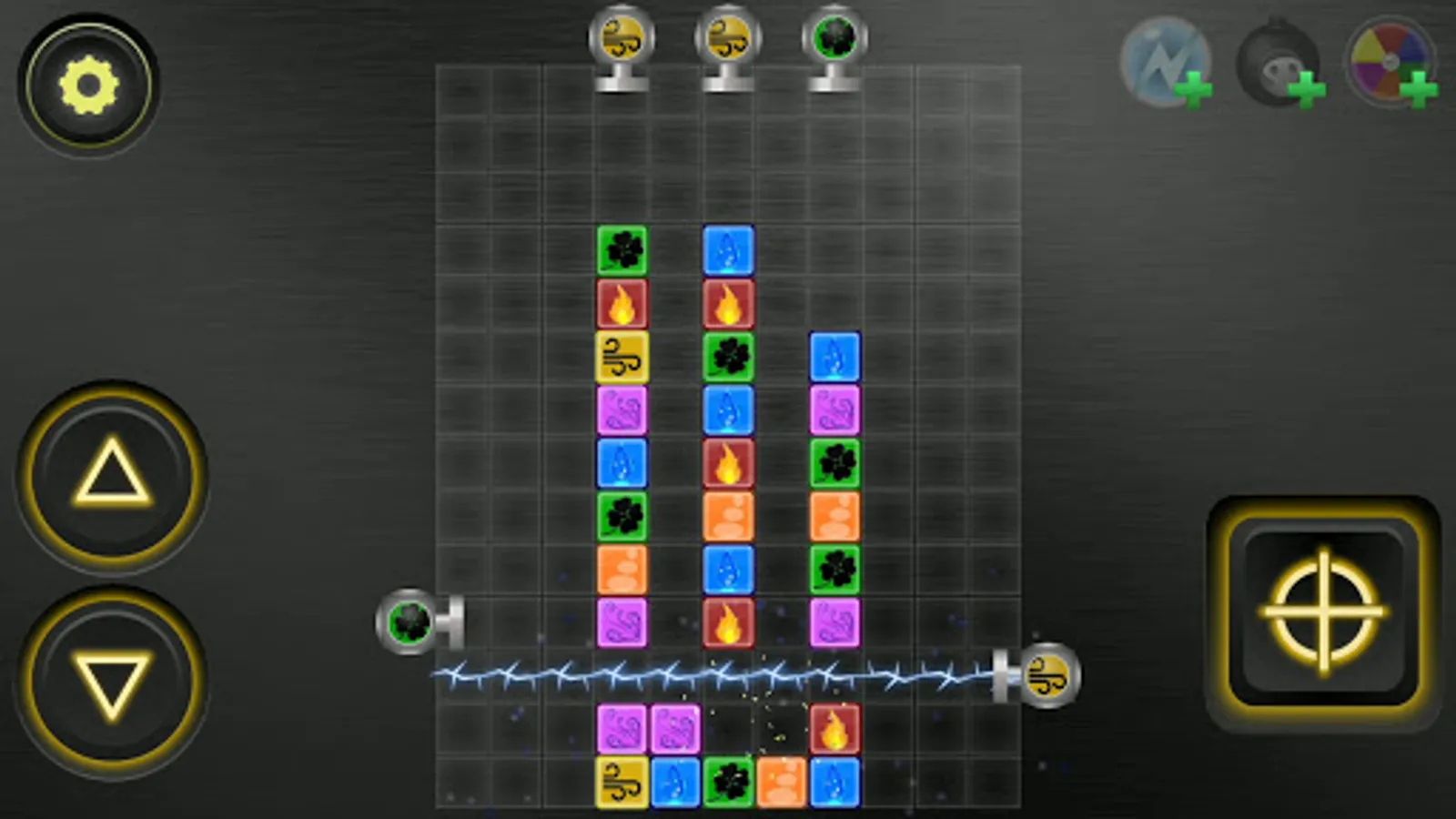 Purpose of the game: clear the field. Automatic cannons from above will interfere with this in every possible way.