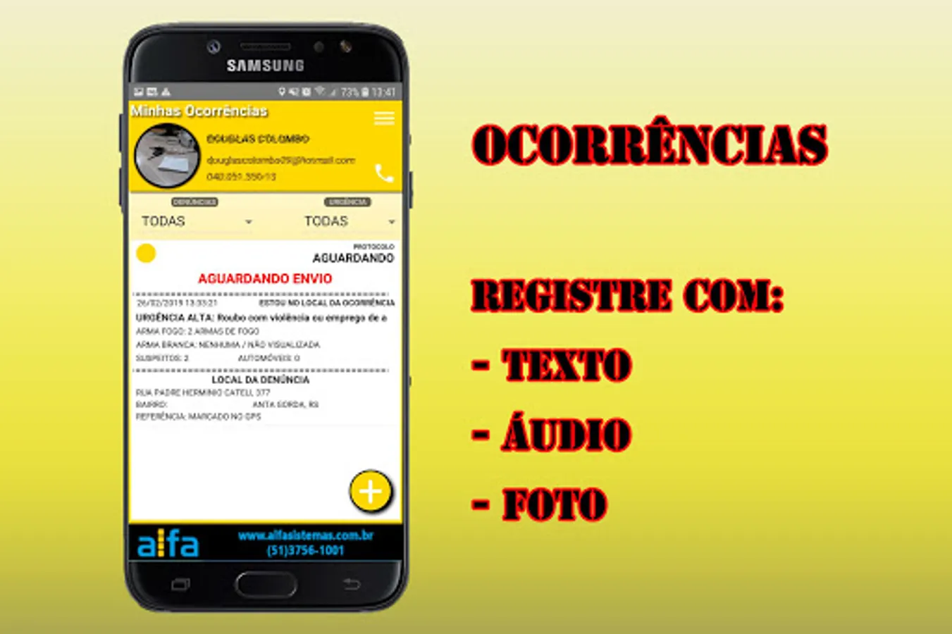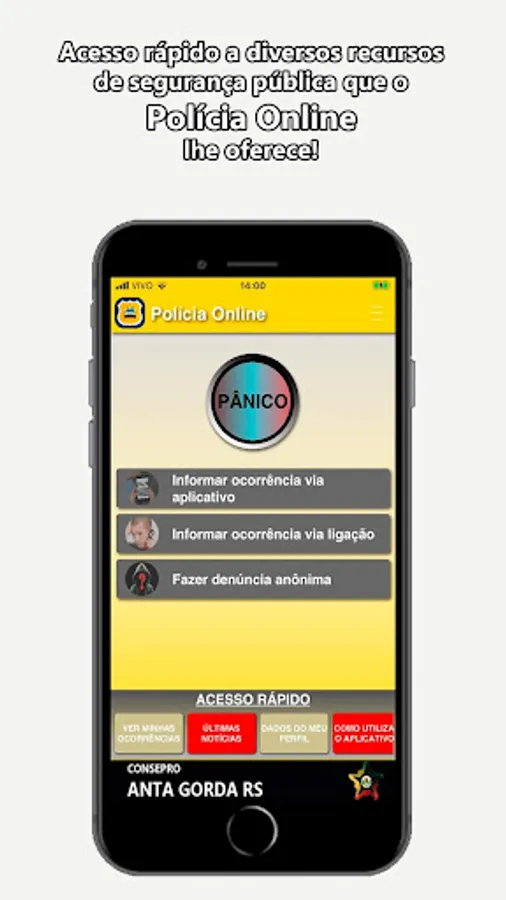 The Online Police App provides instant interaction between the citizen and the local Military Police. With the free application installed, in the municipality that made the adhesion, the citizen will have access: