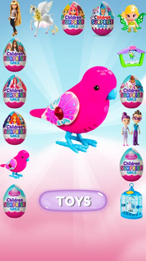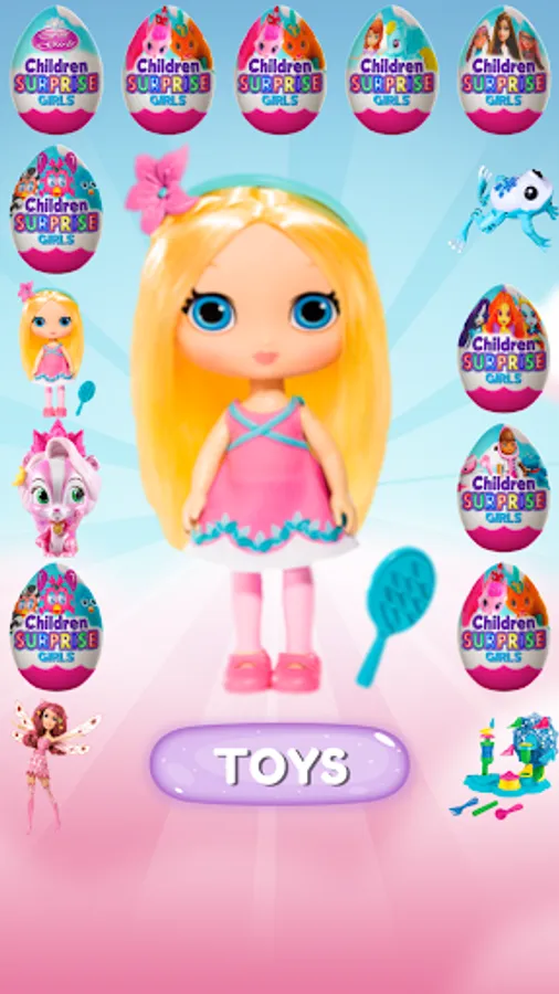 Chocolate and dolls are words from which any adult or little girl will have lights in their eyes! In this game you can find not only this, but also game sets with houses, animals and various accessories and decorations for girls. Now for all this, do not necessarily go to the store, because after downloading the game, you can print chocolate eggs, find surprises in them and collect their collections of toys without leaving home. This special version of FOR GIRLS contains the most famous and exciting toys! Puppets, dolls with accessories, butterflies, fairies, little ponies, magic horses and unicorns, pets, princesses and even a designer for girls! A beautiful and gentle strawberry-heavenly design of the game will immerse you in your magical country. Any lady will be happy to see her beloved princesses and other popular characters from cartoons.