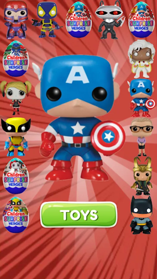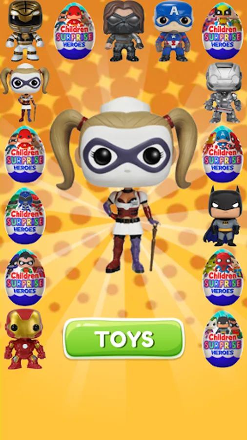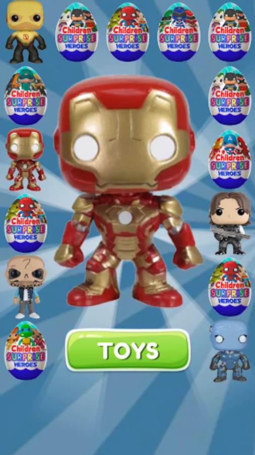 In the universes of comics every day there are any incidents, there are different events, good and bad. And the reason for this is real super heroes with superpowers! Some induce riots and fear of people, others save cities and even entire planets from evil. In this game you can collect your largest collection of SUPERHEROES from your favorite comic book magazines, cartoons and movies. Now for all this, do not necessarily go to the store, because after downloading the game, you can print chocolate eggs, find surprises in them and collect their collections of toys without leaving home. In this special version of SUPERHEROIDS are collected the most famous and favorite characters of comics, cartoons and films, which are known to all modern boys and girls: