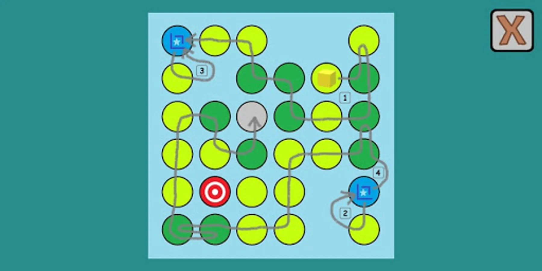 Levels - in a single player game you meet levels in which the player's goal is to get to the red square with white circles (finish). But before the team, the player must go through all the green blocks. The light green blocks fall after the player leaves them. And this will complicate the player's way to the finish. Additional elements are added at higher levels. For example, dark green blocks, which the player must step on twice. And only then will they fall. So the player has to get to the goal whenever all the green blocks have fallen. There are also stones in the game (they never fall and the player can start on it as much as he wants). As a last element, there is a teleport that moves you to another square and closes like a stone, you can select as many as you want.
