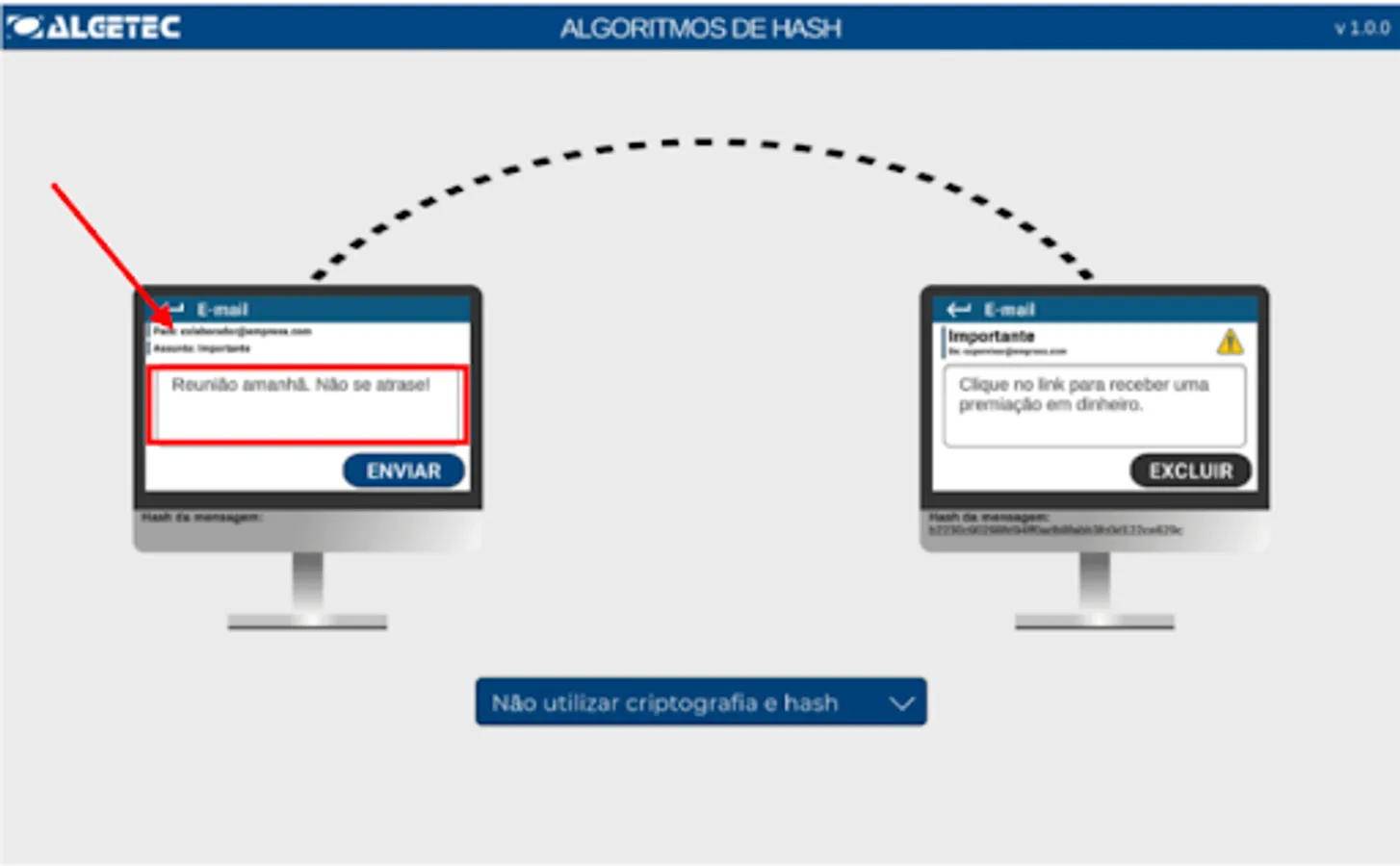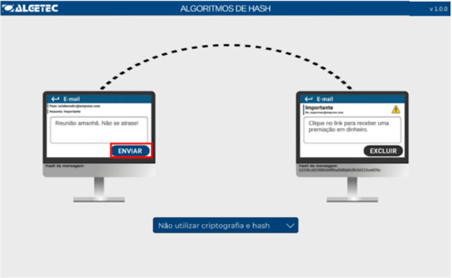 You must simulate the transmission of messages between a sender and a receiver without interception. For this, the information to be transmitted will be summarized using a hash algorithm, which will be compared with the summary generated at the receiver using the same algorithm.