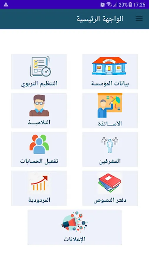 An Android application for the management of an educational institution in which there are several accounts (manager - advisor - supervisor - professor - student - guardian) linked to each other, each account and its powers, the application provides several services, including