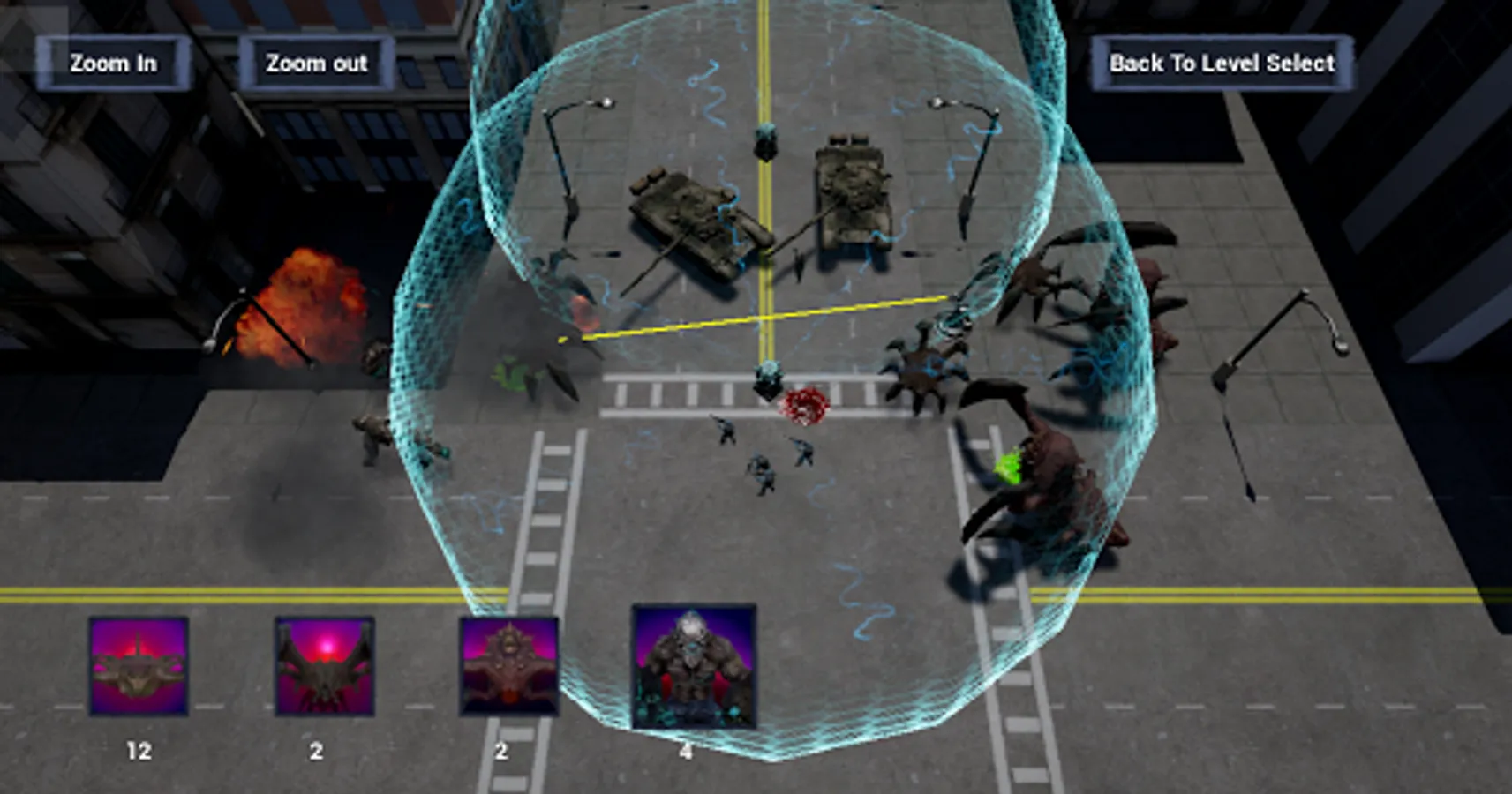 “Alien Blitzkrieg” brings you a very exciting and interesting war game with lots of fun and challenges. The game is very simple to play and is perfect for gamers. Invade the earth with alien creatures by dropping them from an asteroid in orbit. There are over 40 challenging levels with many more being added frequently so players never get bored and will continue to enjoy the game. You'll leave a trail of devastation in your wake! Fight your way to Washington and assault the White house. Level up your aliens to make them strong enough to fight the toughest of Earth's army.