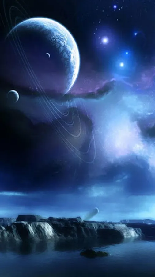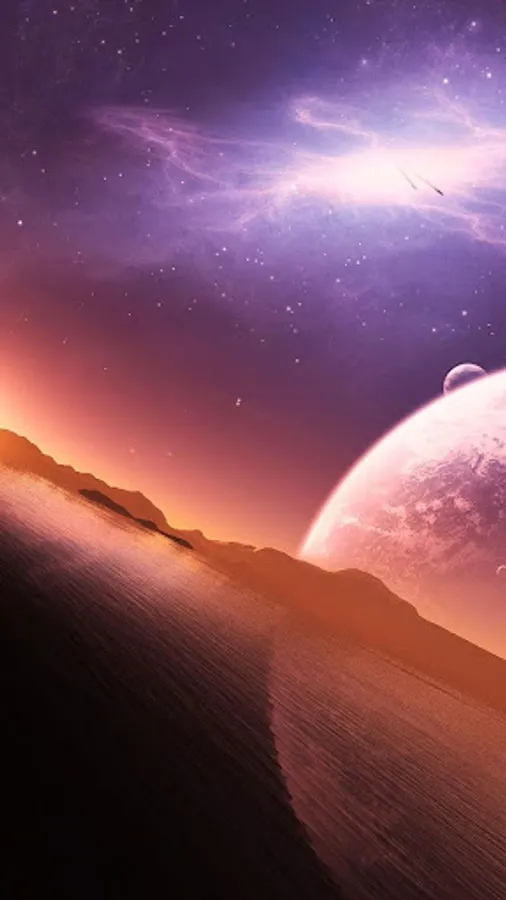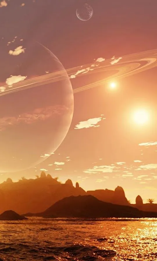 You can walk the fields of gold, swim in a deep sea of various colors, rest by peaceful lake and see all the natural beauty of these wonderful alien worlds! With this unique live wallpaper you will experience beautiful sunrises and sunsets of alien worlds far, far away, with mesmerizing blending colors that create incredible works of art in the sky. Take a stroll through different alien worlds, green valleys, strangely shaped hills; enjoy the view of many satellites and planets from the galaxies unknown to the human race.