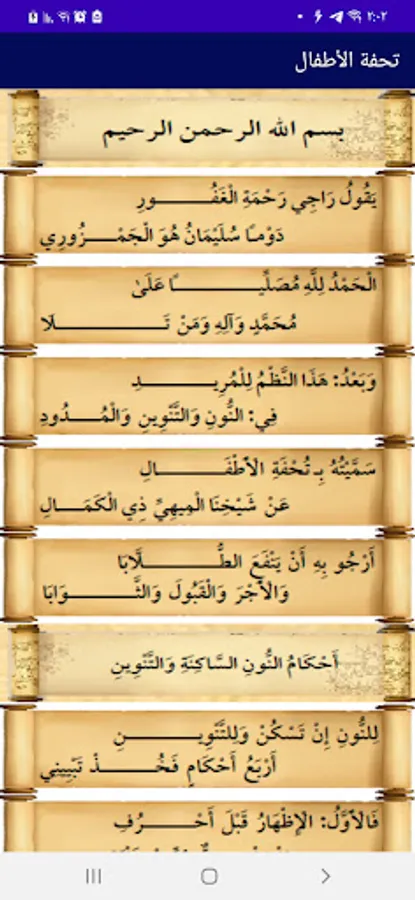 Where this application collected everything related to these two texts, as the rest of the applications dealt with the two texts from one or two sides only. This application, thanks to God Almighty, is suitable for all groups and for all ages wishing to learn the Qur’an and learn intonation through these two archetypes of the island and the masterpiece.