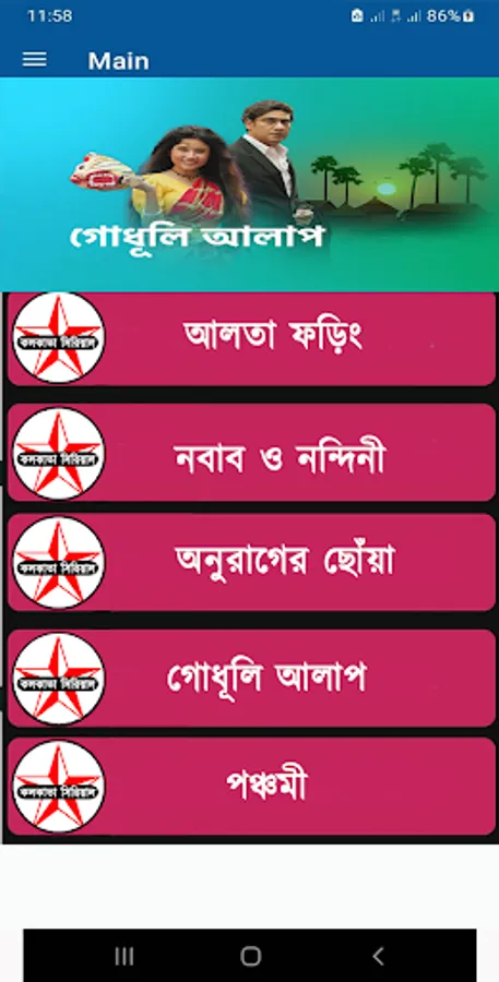 কলকাতা বাংলা সিরিয়াল আমাদের খুবই জনপ্রিয় নাটক। আমরা আপনাকে বাংলায় বিনোদনের জন্য বিনামূল্যের সেরা অ্যাপ্লিকেশনটি উপহার দিয়েছি।