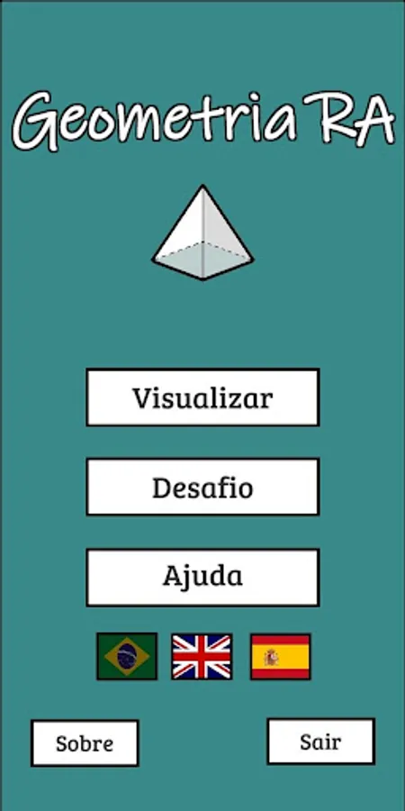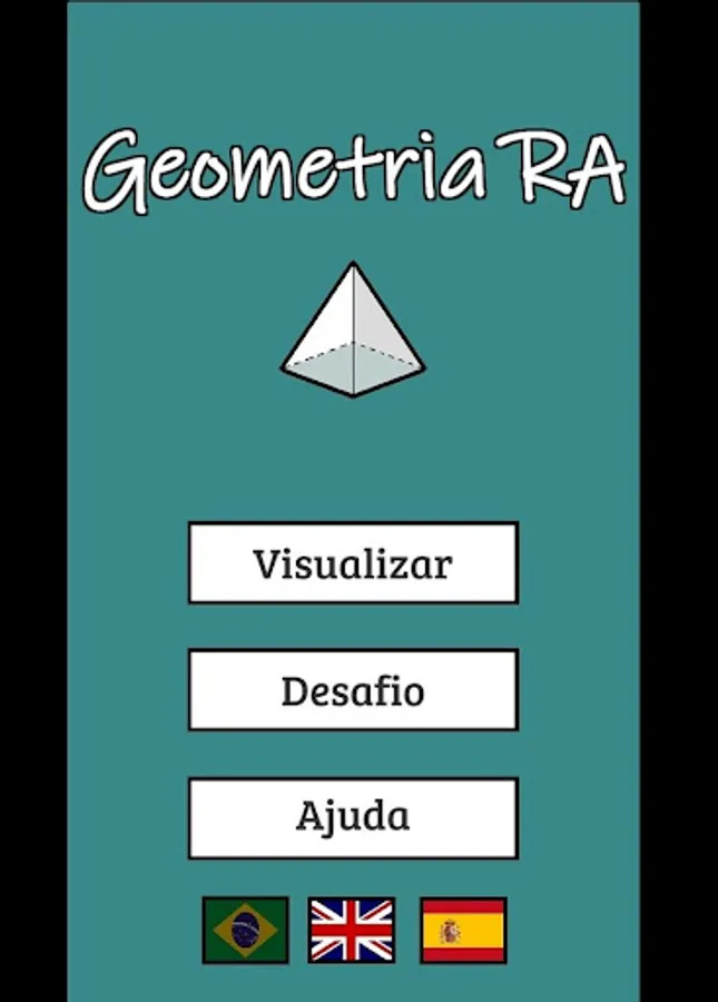 This application aims to assist in teaching spatial geometry, such as: prisms, pyramids, cylinder, cone, sphere. In addition to showing the solid in 3D, it shows an animation of the solid forming from its flattening or its revolution. It uses augmented reality based on markers, the images of the markers can be downloaded through the link in the help menu within the application. To view the geometric solids it is necessary to point the application camera at the images of the markers.