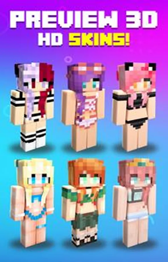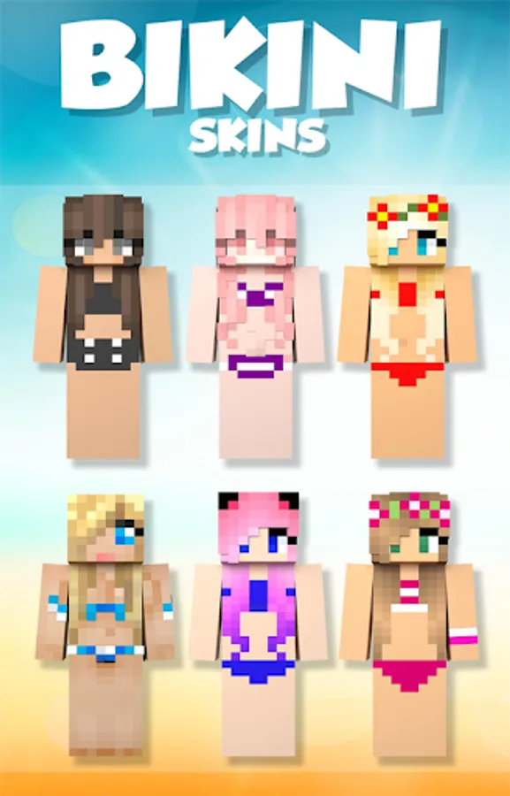 Bikini Skins for minecraft is compatible with both PC and Pocket Edition and work with all mods and addons. All features are absolutely free to use. Our skin packs include with top Bikini skins for minecraft, baby bikini skins, multiplayer skins, redactor rainimator upgrader, wtf skins, 4d mobs babies, golem skins, teen, monster, noob skins, best, hot skins, one piece, two piece, lucky block, cape editor, free craft, horror mermaid skins, camouflage skin, beast daily skins, kawaii, wizards school and hd, monsters with ears, girl with ears, survival and see more inside. Tell your friend and recommend this app because we have huge collections of Bikini skins!