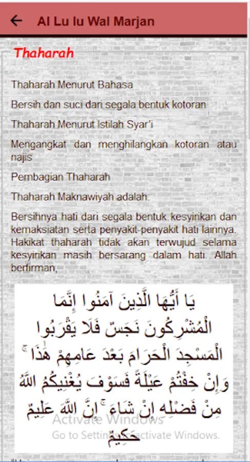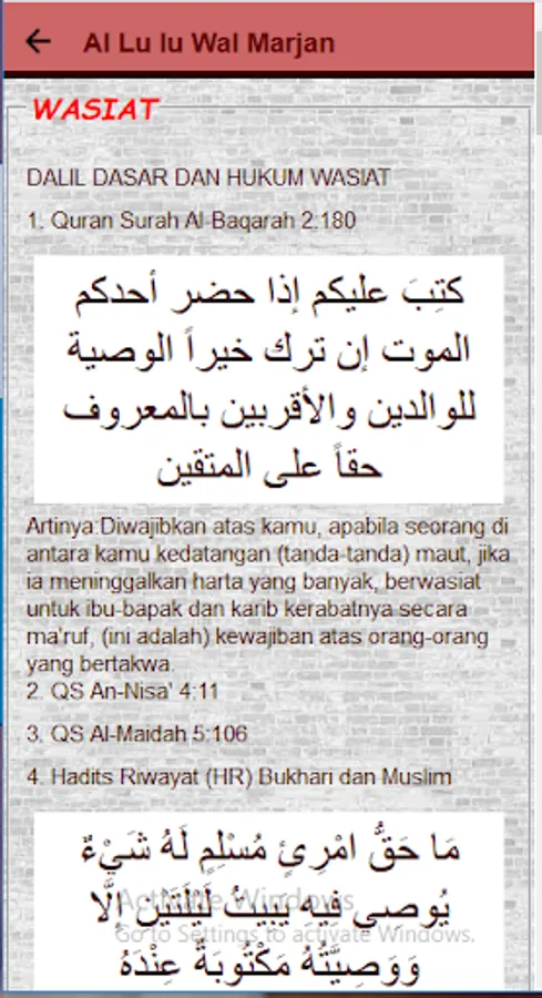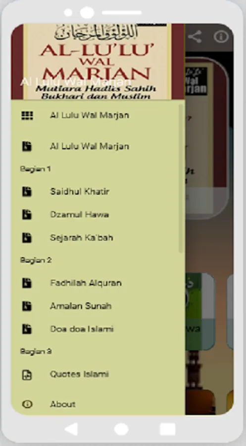 The Book of Al Lu'lu' wal Marjan is a book containing a collection of authentic hadiths about various branches of Shari'a science. And among other contents it discusses faith