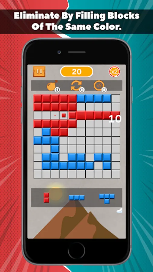 • Fill the rows or columns with blocks to remove the them. However, the blocks will only eliminate if they are the same color.
