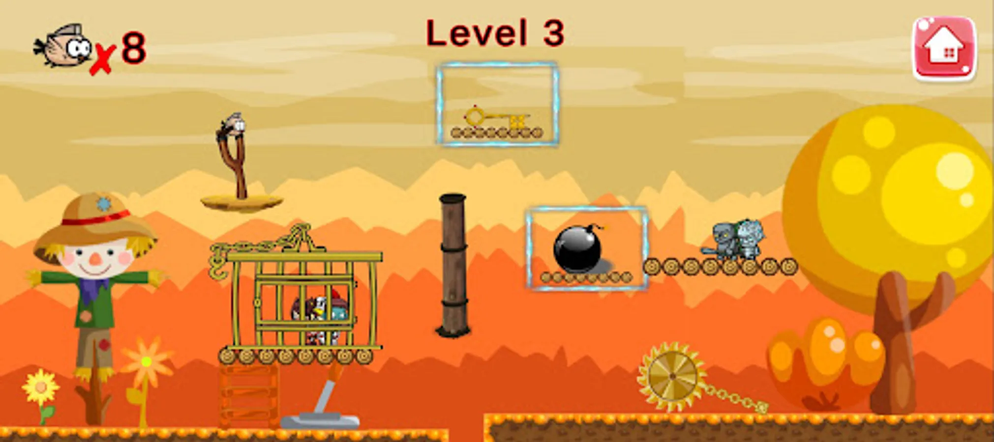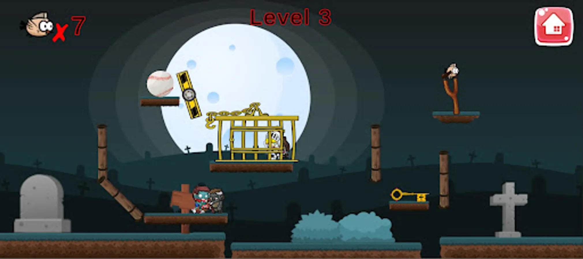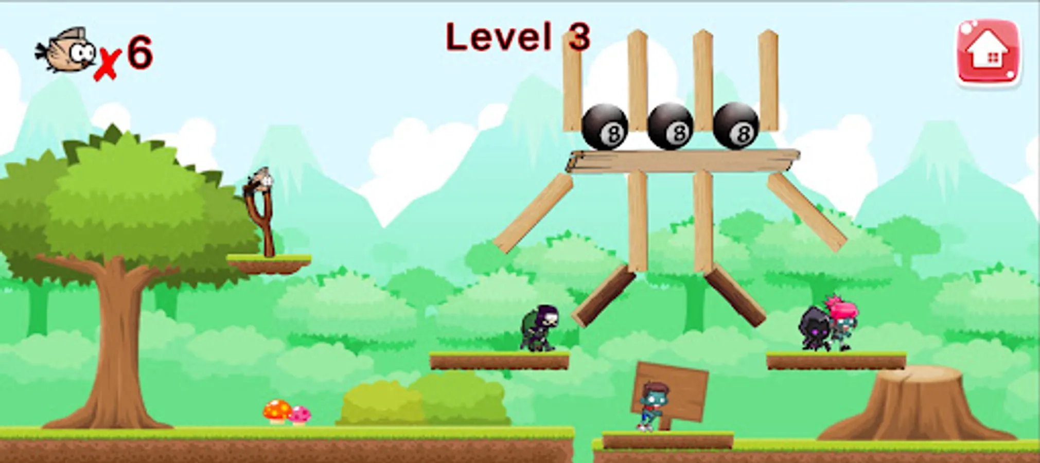 Mad Birds 2 is a place where moving but dead monsters are ready to kick and hit the burning bird. It is something made as add on to its first part. As its first part ,it is a simple game with mysterious levels but here, a catapult is used by the player to add some force into his bird and shoot the moving deads on other side to make them fall from there platform and touch the ground.