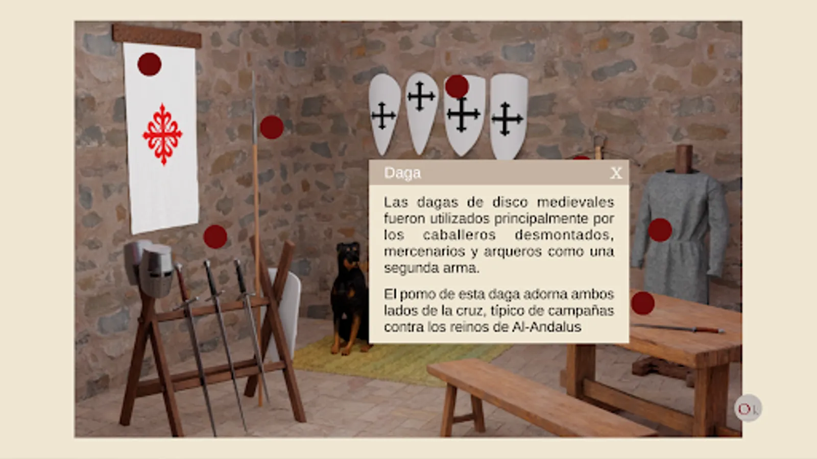 A 360º experience is actually a virtual reality experience, but without the glasses and all the equipment they need. In the 360º experience, a render is displayed that recreates the upper room through which we can move (turning the camera and turning the environment), clicking on information points that will open new panels
