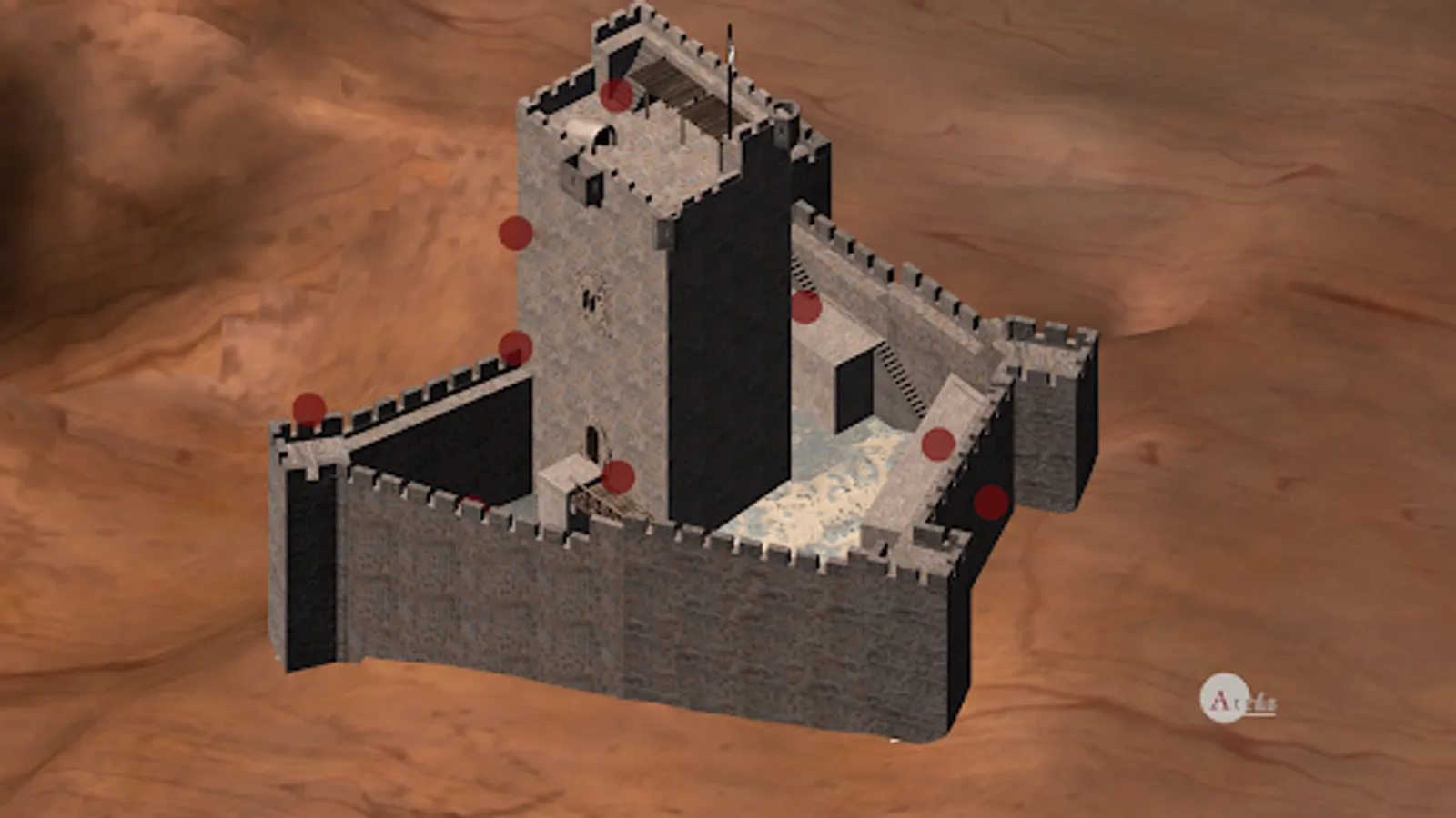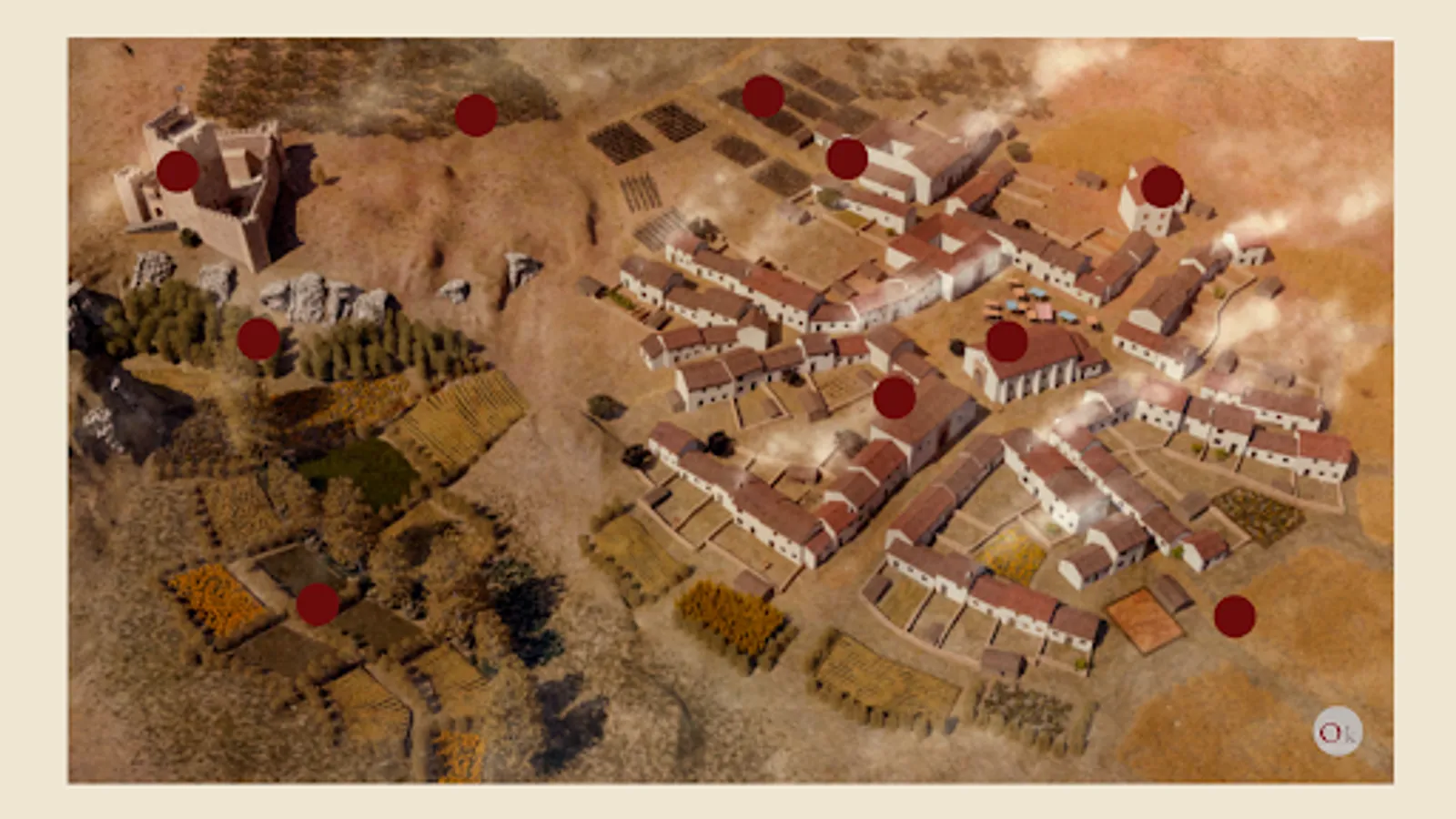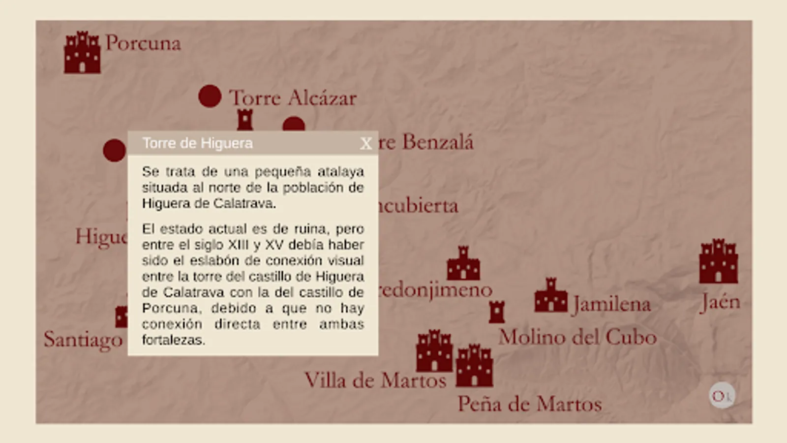The tower of Higuera de Calatrava and a hypothetical interpretation of its castle in 3D with different interactive points are shown; with which extra information is accessed through an on-screen panel.