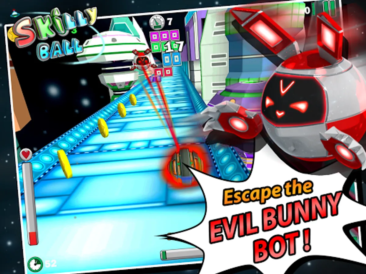 It’s a race against time as you speed through an enormous alien world, dodging deadly traps, smashing through walls and space monsters alike. But watch out – the evil Robo Rabbit is after you!