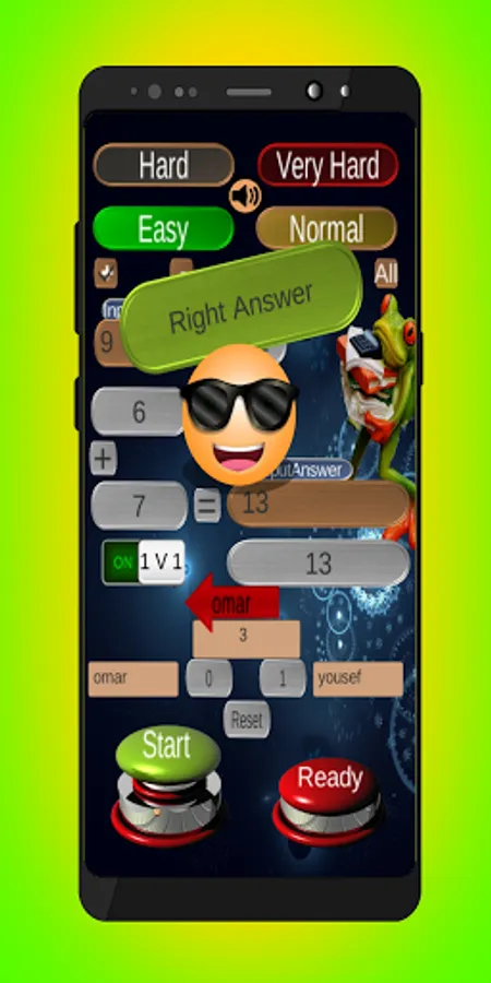 - تستطيع تغيير الصعوبة في الأسئلة سهل عادي و صعب ليتناسب على قدر العمر او المهارة.