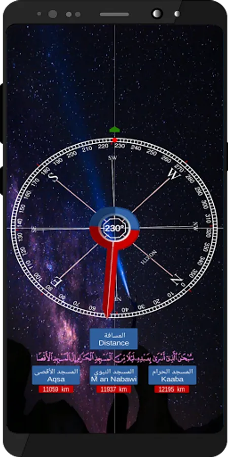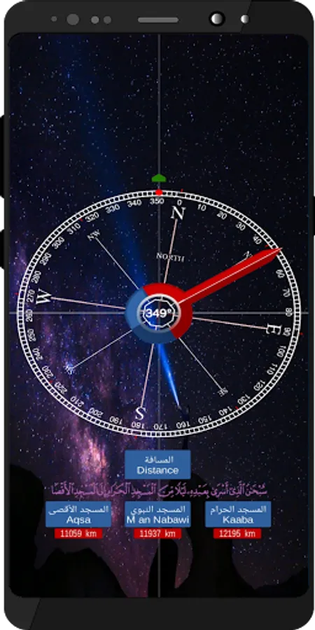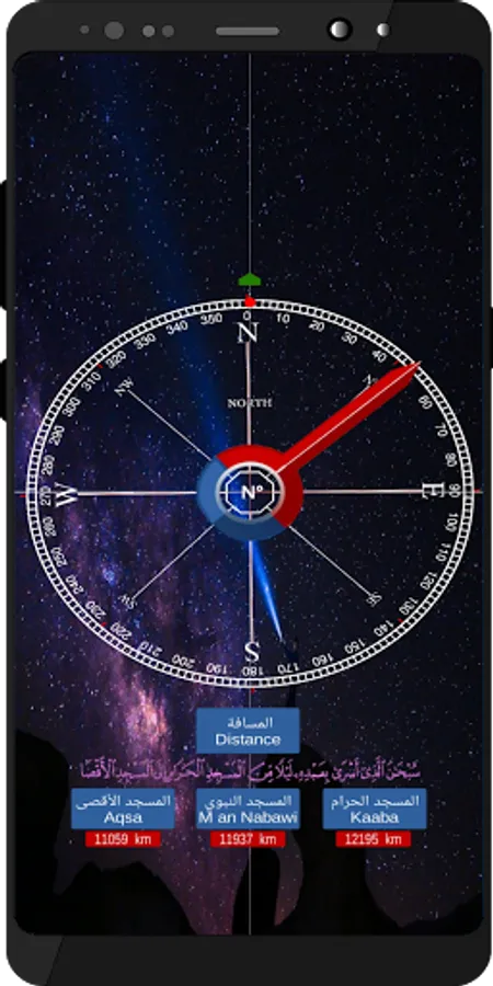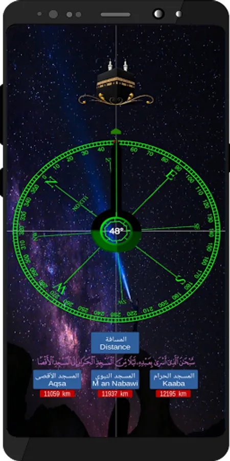 - أتجاه القبلة )الكعبة( و أيضا بوصلة لجميع الأتجاهات بدقة عالية و لجميع الأستخدامات الأخرى.