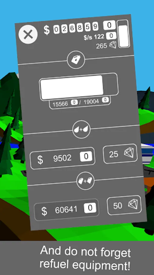 If you leave the game when filling the tank with fuel, the game continues to play and the gold is mined!