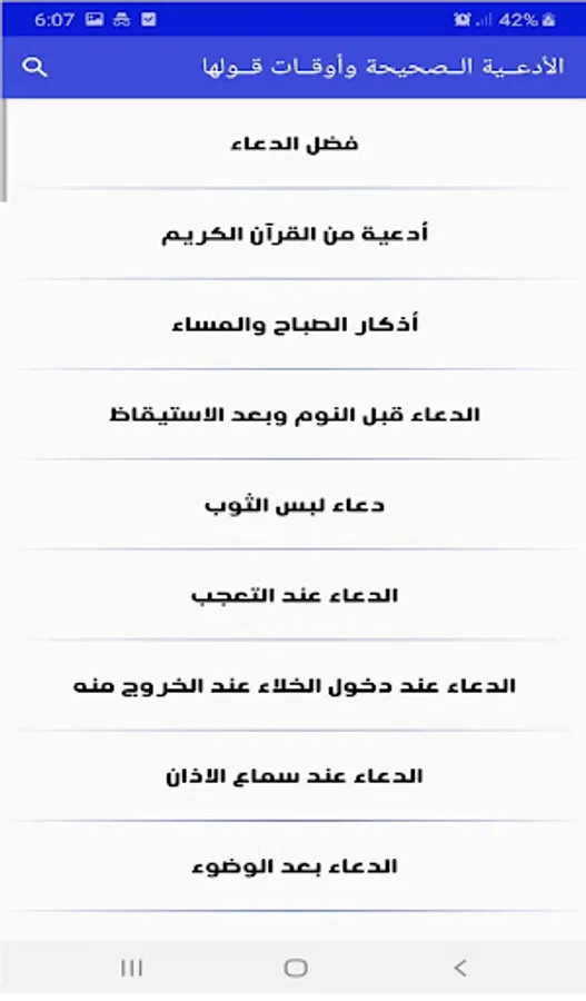 The application contains the correct supplications and the times of their saying whether they appeared in the Holy Qur’an or a hadith transmitted from the Messenger, may God bless him and grant him peace or sayings of the righteous predecessors explained in an easy to understand manner with the ability to search for any hadith easily, and provide the ability to copy and share supplications.