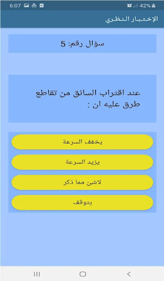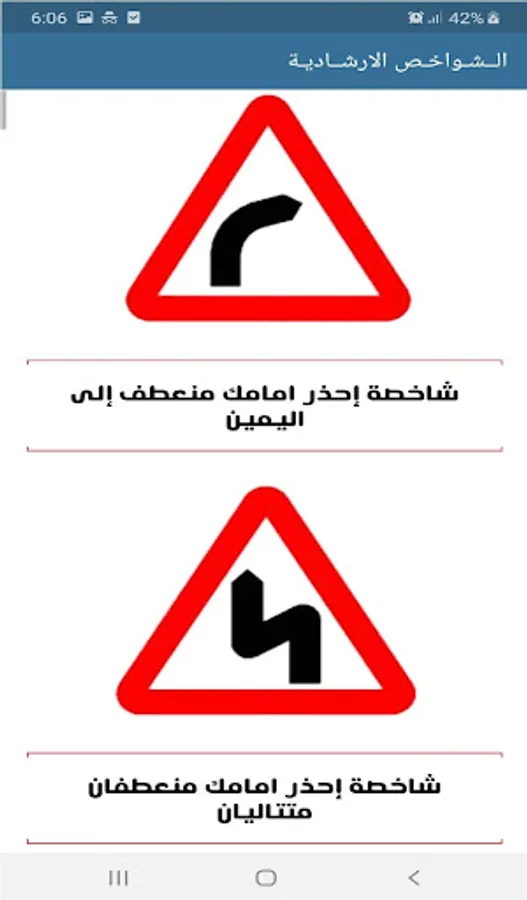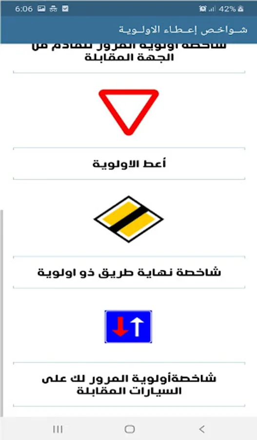 The application contains traffic signs (indicative signs, prevention codes, mandatory characters, and priority giving characters) and explaining what each traffic sign means and also contains a theoretical test that enables you to review your traffic information and increase the ability to understand traffic laws.