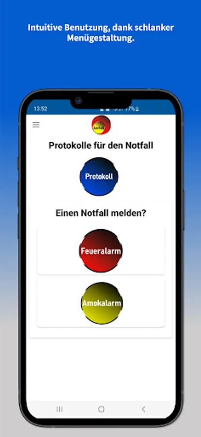 Recognize dangers, inform participants and thus save lives. With the AmSoS app, teachers in educational institutions always have the emergency alarm button close at hand and can therefore point out/react to life-threatening dangers in educational institutions within seconds. Due to the decentralized control system of the app, all teachers of an educational institution are made aware of the respective situation by a signal tone and a message. This eliminates the need to search and run to the fixed emergency button.