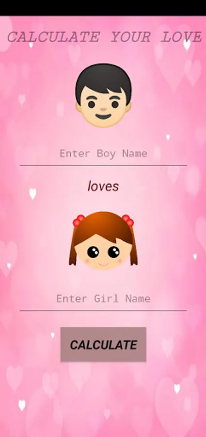 This app is for fun and entertainment and used to calculate the love percentage between two people names.