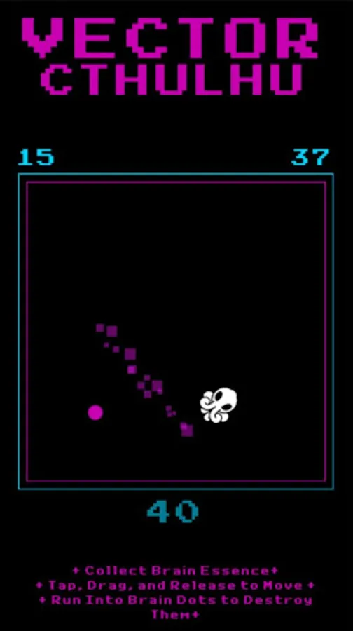 In Vector Cthulhu, you slingshot a little cthullhu around the screen, running into little "brains" and bursting them so you can collect their sweet sweet essence. Cthulhu's like brains, right?