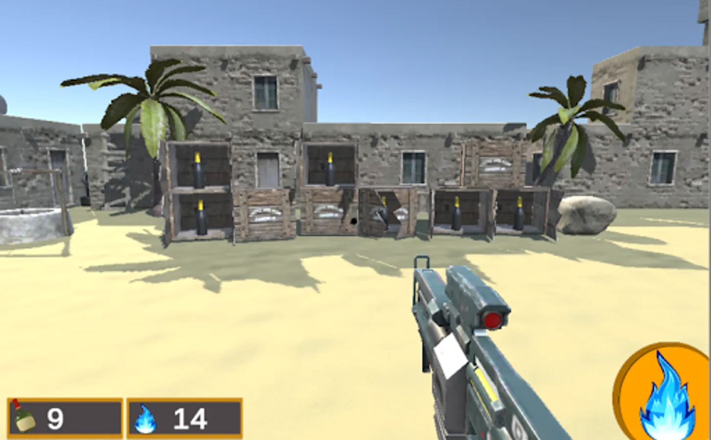 For real smashing bottle shooting training simulation, this new bottle blast game is designed as a Sci-Fi Western military shooting training camp.