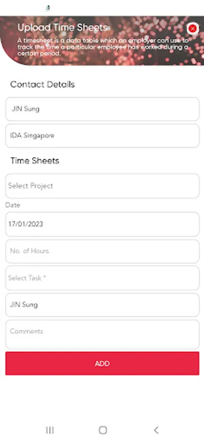 • Employee work schedule / time sheet