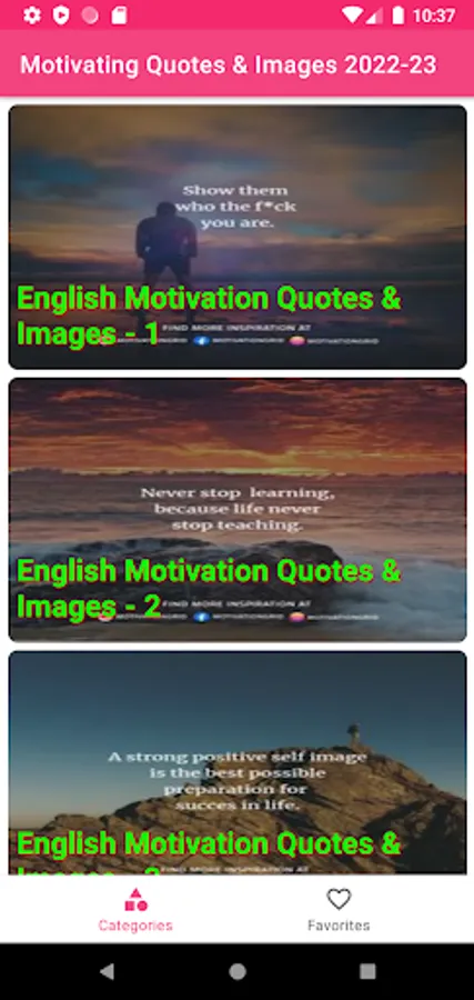 This app contains 5000 plus Motivational, Inspirational and Success Quotes that starts your day with motivation.