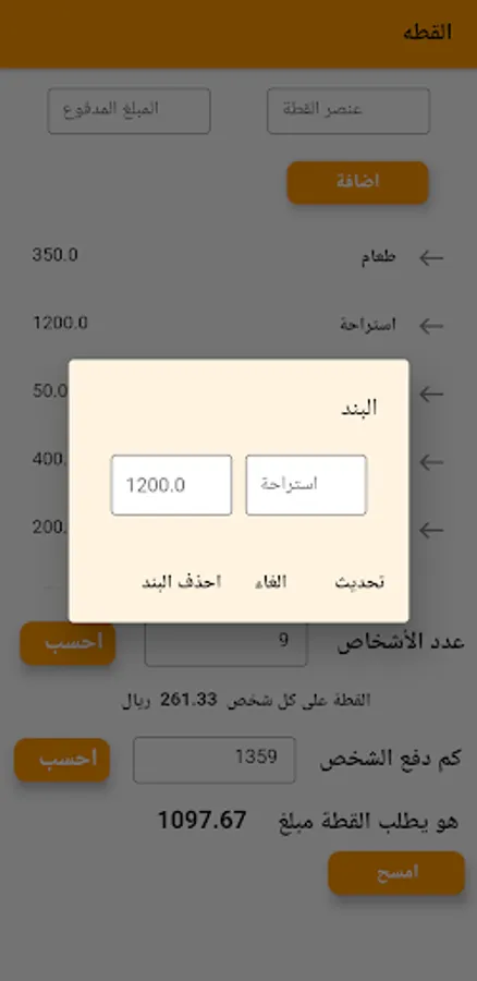 A program for calculating the elements of the cat and the cost to the person, where the amount paid by the person is vacated, it is clarified if he has an amount from the cat or pays an amount to the cat