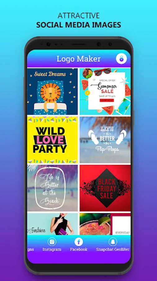 An Instagram story or post, Facebook header, logo maker, photo collage, wedding invitation maker, card maker, poster maker, banner maker or email header creator — All this can be done very easily with Logo Maker.
