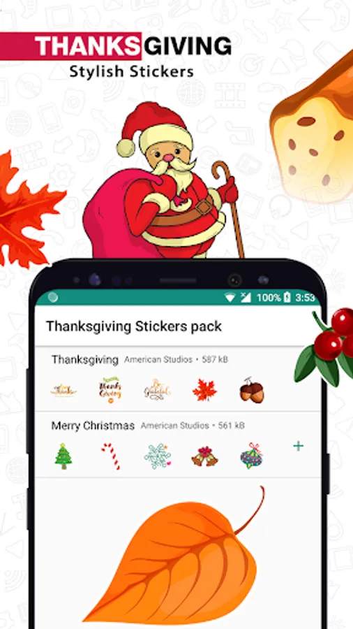 Now Enjoy Adding Thanksgiving & Christmas WAStickersApps Pack. Almost all type of Sticker pack are added in the single app.